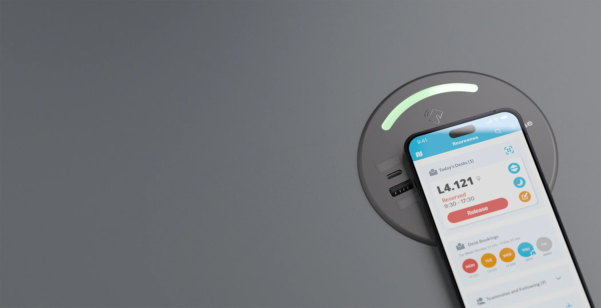 Floorsense pairs intelligent hardware with robust software to streamline workplace management. Users can easily find and book workpoints, while you gain valuable insights into workplace utilization.