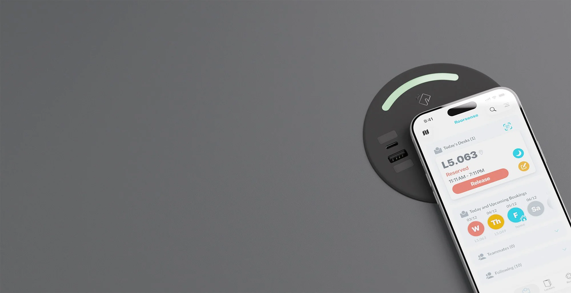 Floorsight integrates booking software with at-desk hardware for frictionless desk booking and coworker location.
